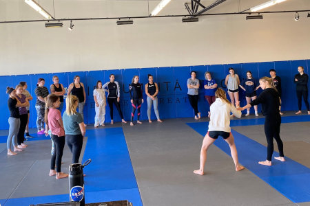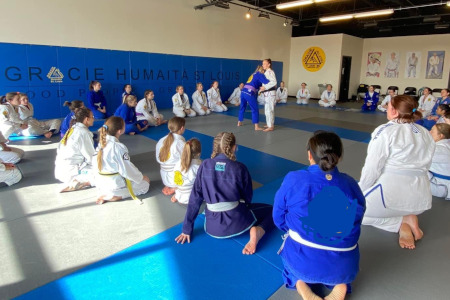 Educating women by explaining the principals and background of Gracie Jiu Jitsu and its benefits against larger opponents.